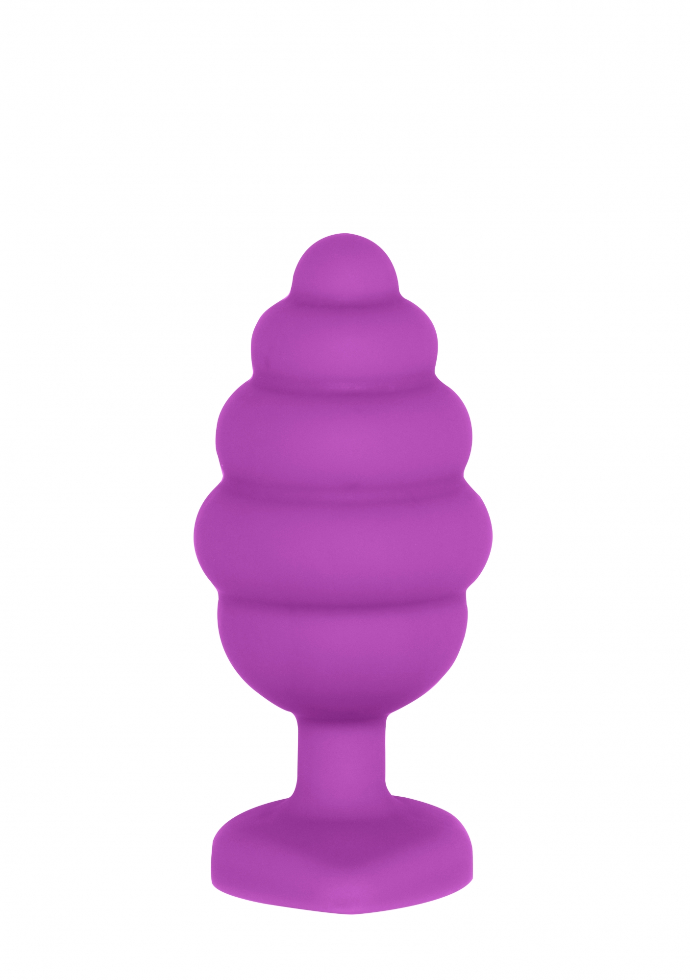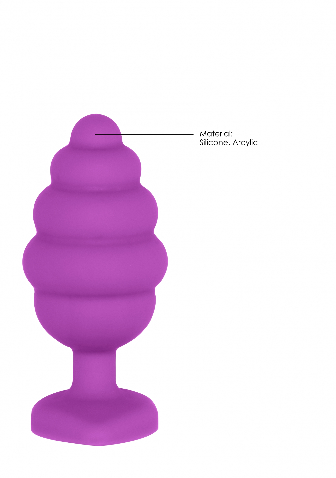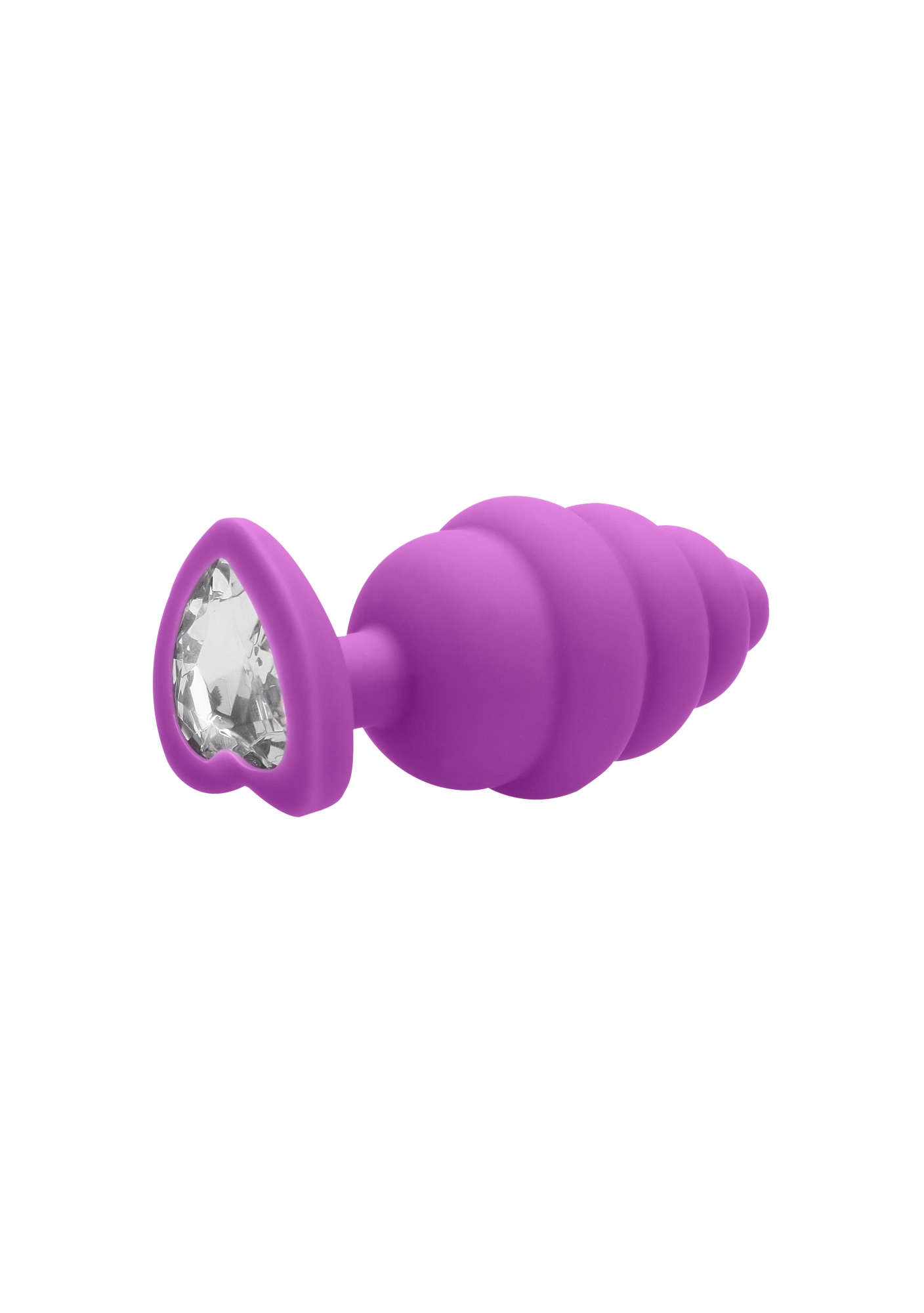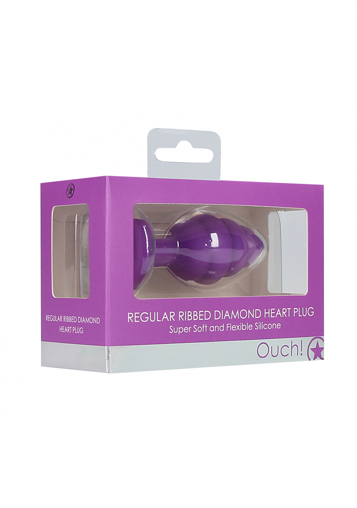 Ouch! Regular Ribbed Diamond Heart Plug - Fialový análny kolík pre zmyselnú stimuláciu