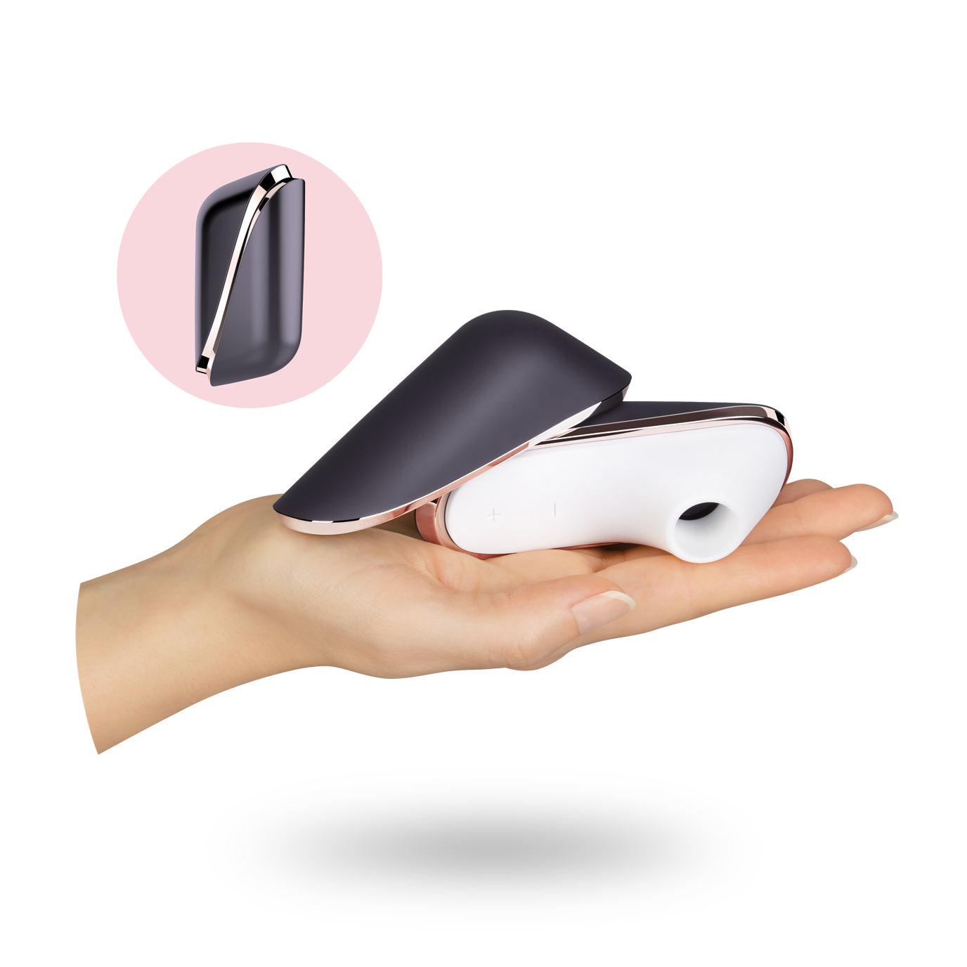 Prístroj zapnite stlačením tlačidla + po dobu asi 2 sekúnd. Zapnutím sa SATISFYER PRE TRAVELER automaticky nastaví na najnižšiu možnú mieru podtlaku.