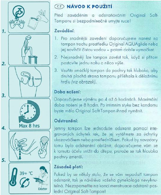 Zaveďte tampón hlboko do pošvy. Na vybratie uchopte tampón prstami a jemne vytiahnite.